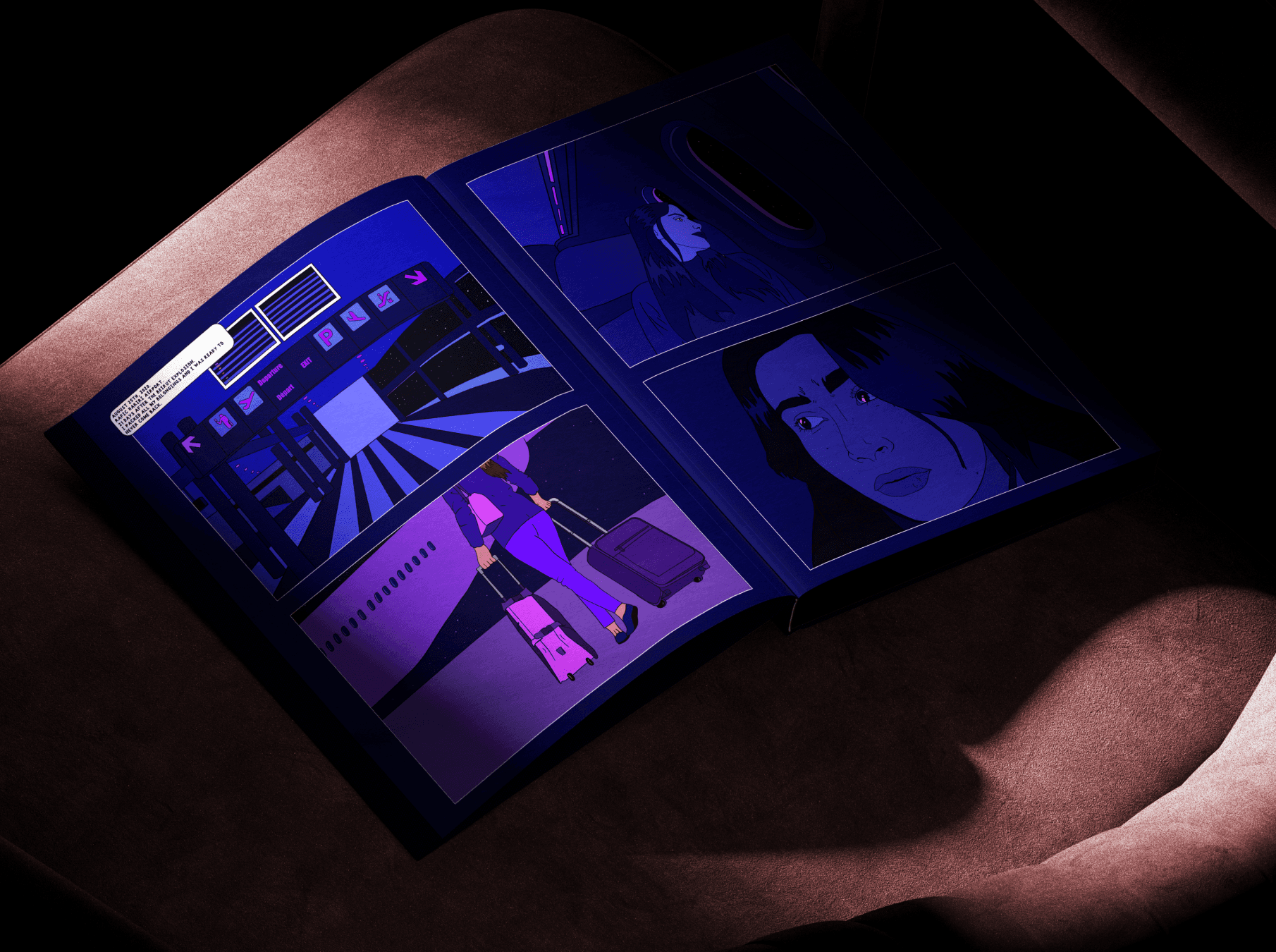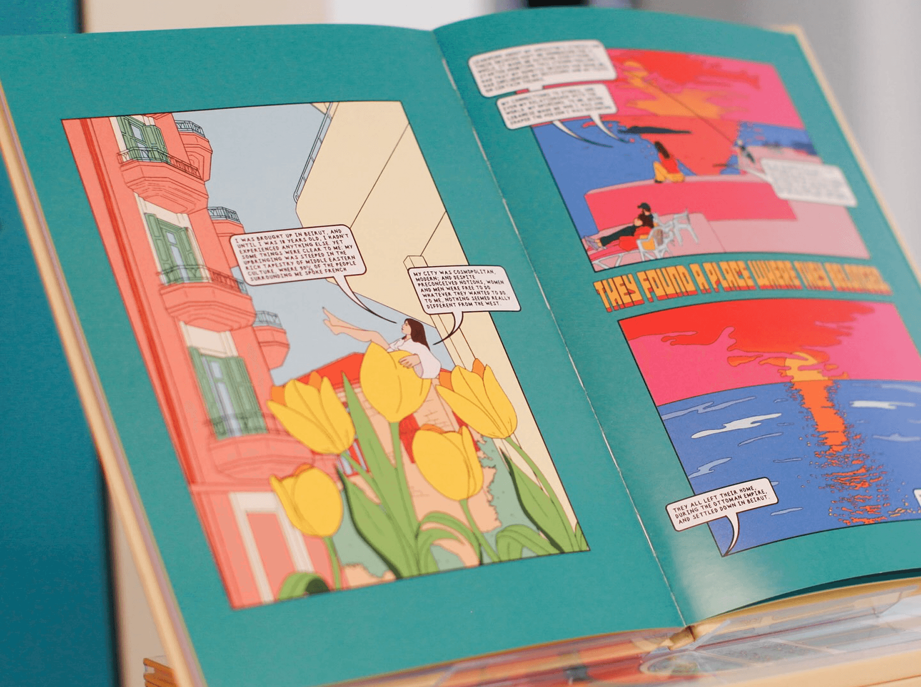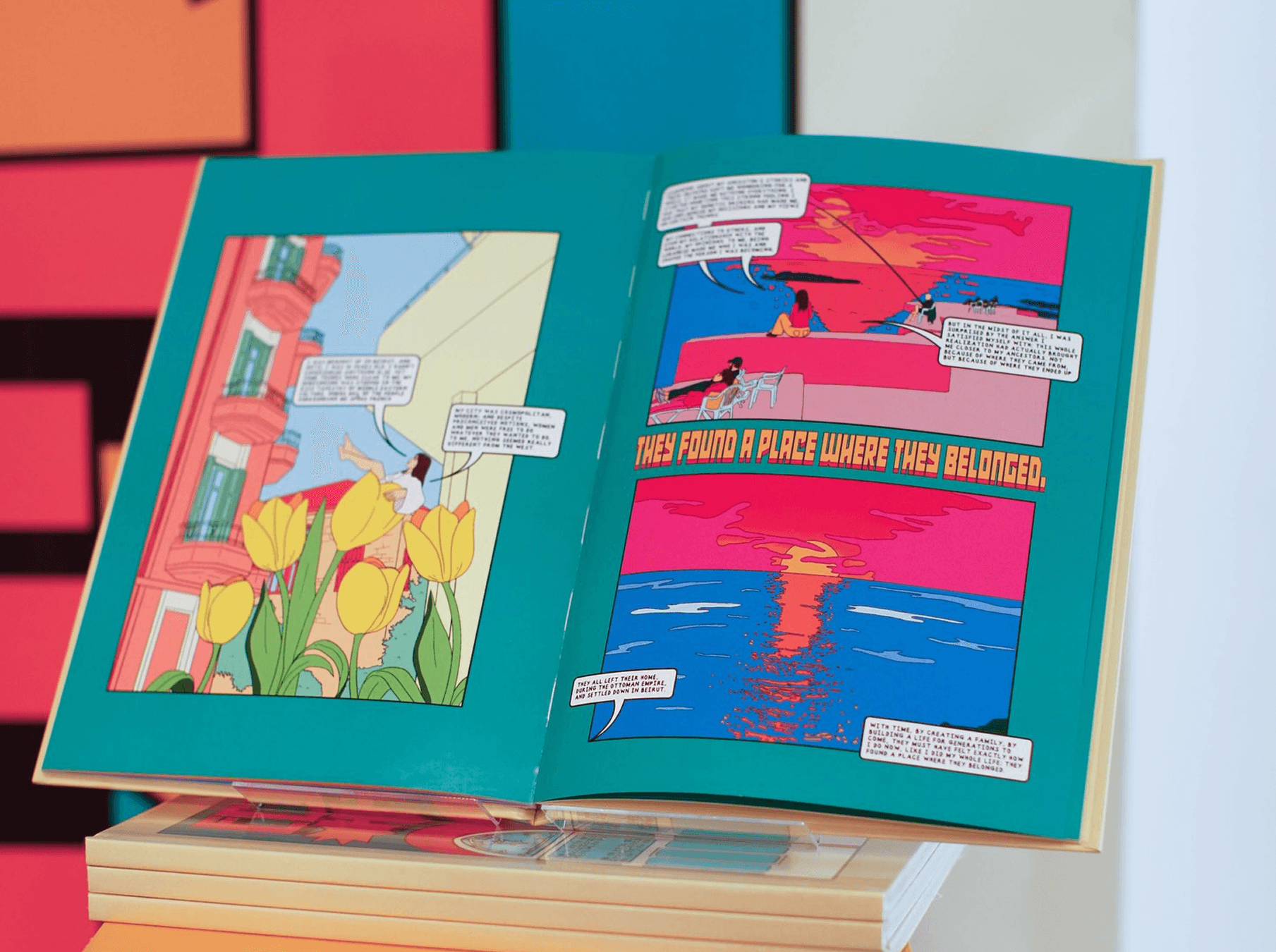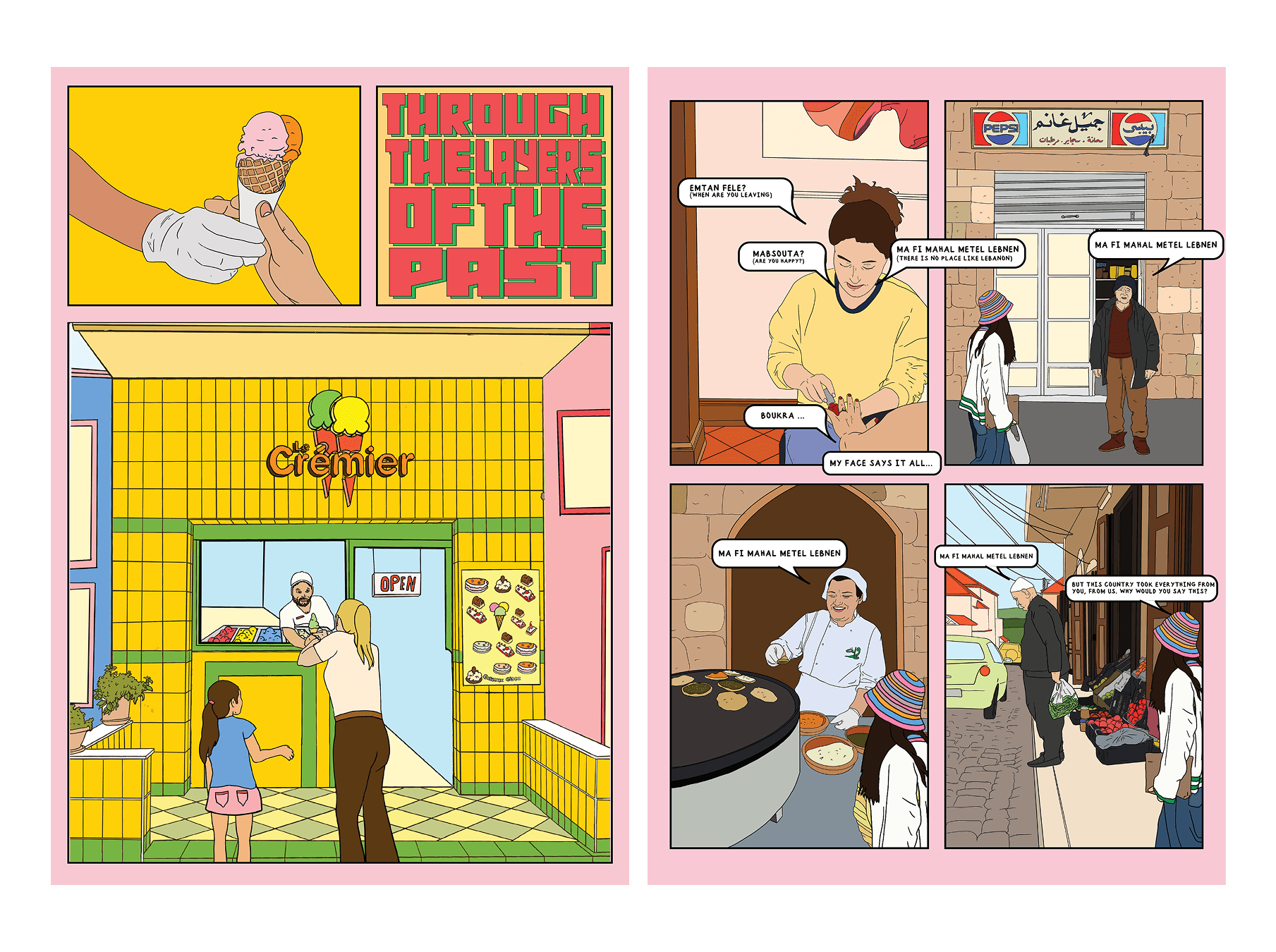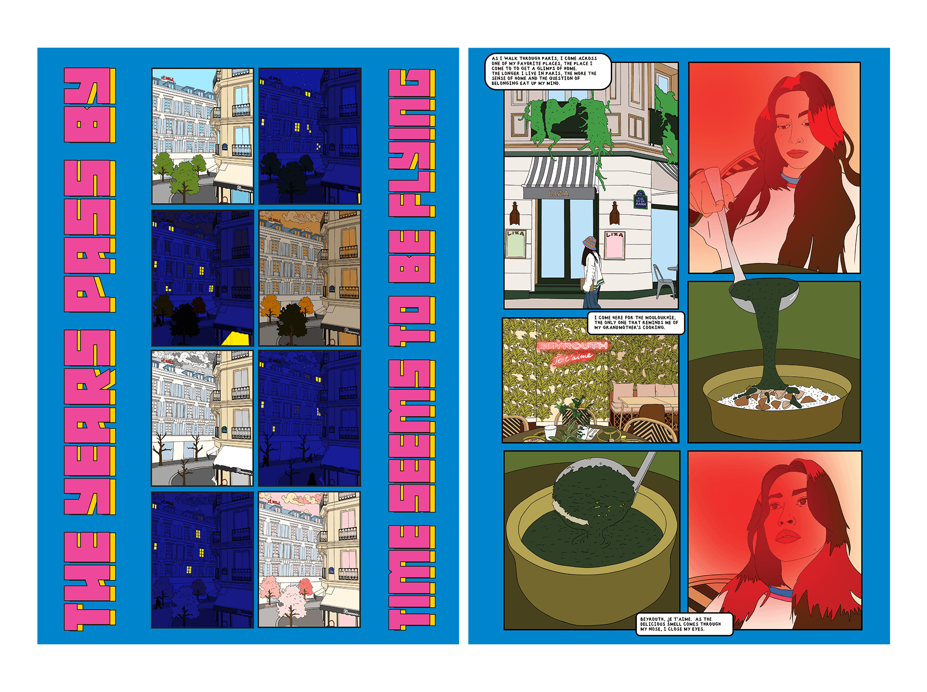 The project unfolds as a series of moments rather than a linear narrative — fragments of memory, cultural symbols, and everyday scenes that evoke nostalgia and familiarity. Each page is treated as a standalone composition while contributing to a cohesive rhythm across the book. Echoes of Home was exhibited at Wilde Gallery in Paris, where it was presented as both a visual and narrative object, inviting viewers to engage with the work as a shared reflection on roots, distance, and belonging.