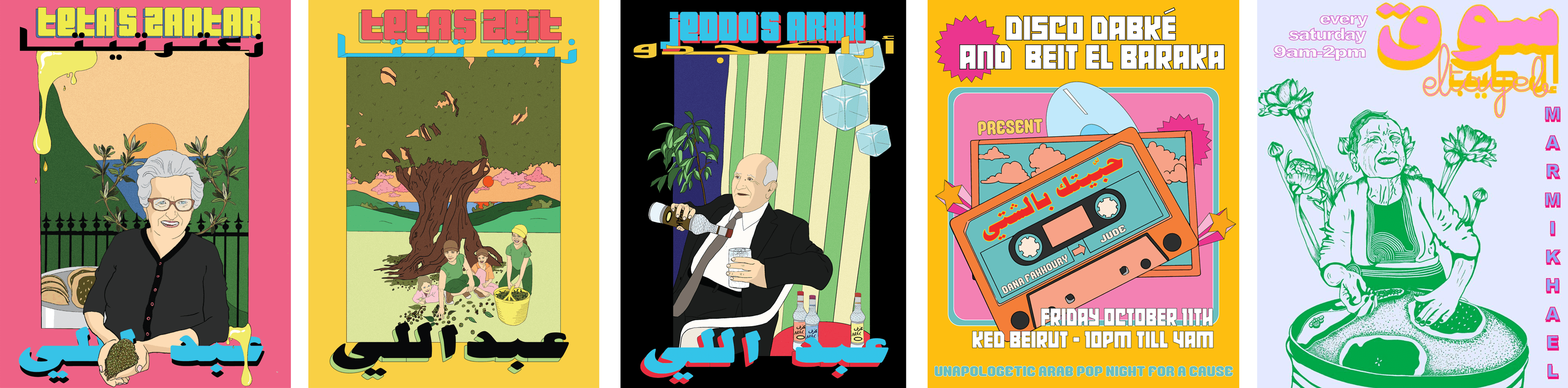 Over the years, we designed a range of posters and prints for independent labels, restaurants, and community initiatives, translating each event’s atmosphere into bold, expressive visuals. From Disco Dabke x Beit el Baraka and Fam Jam for KOKO LDN to Souk El Tayeb, Echoes of Home, and other cultural happenings, each poster captures the spirit, energy, and people behind the occasion.