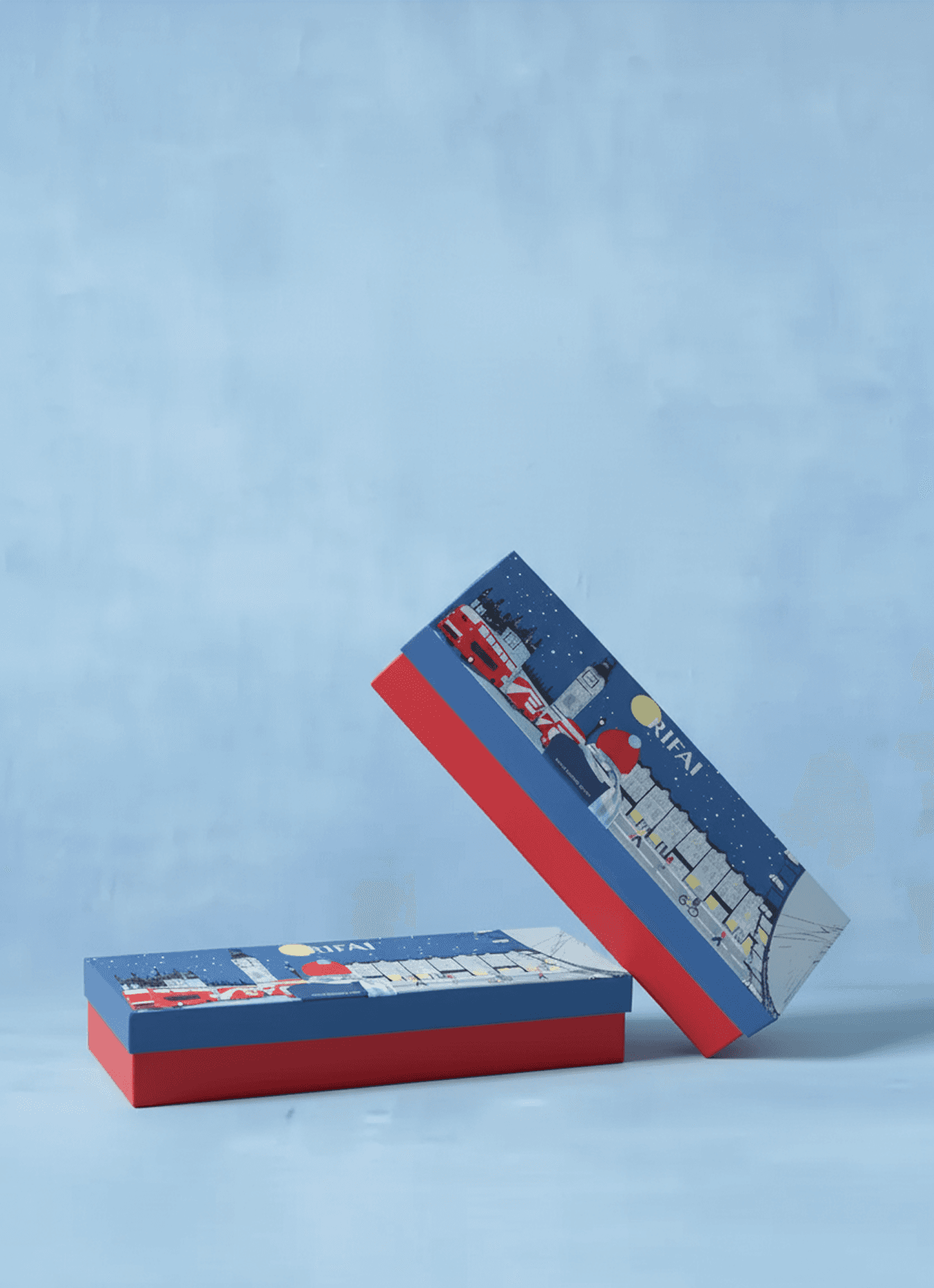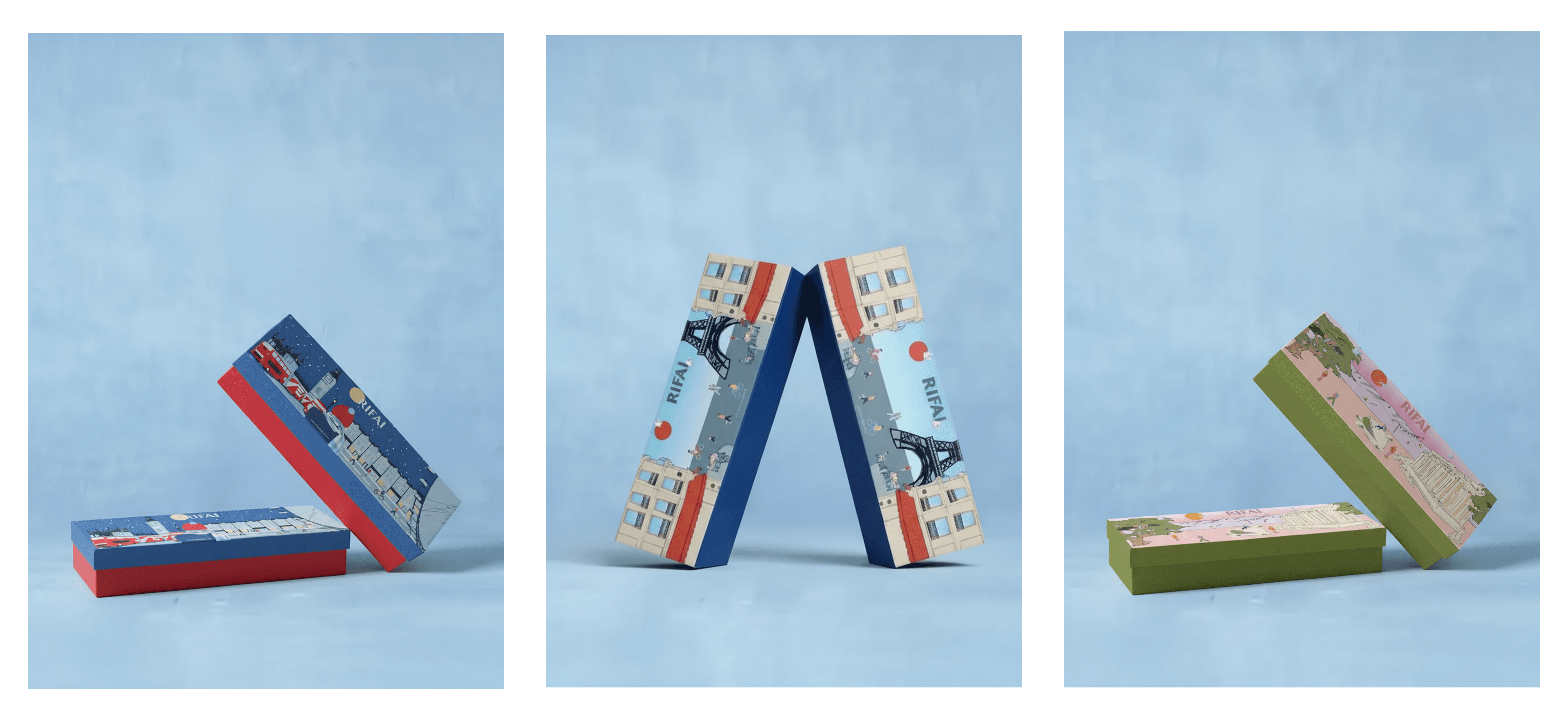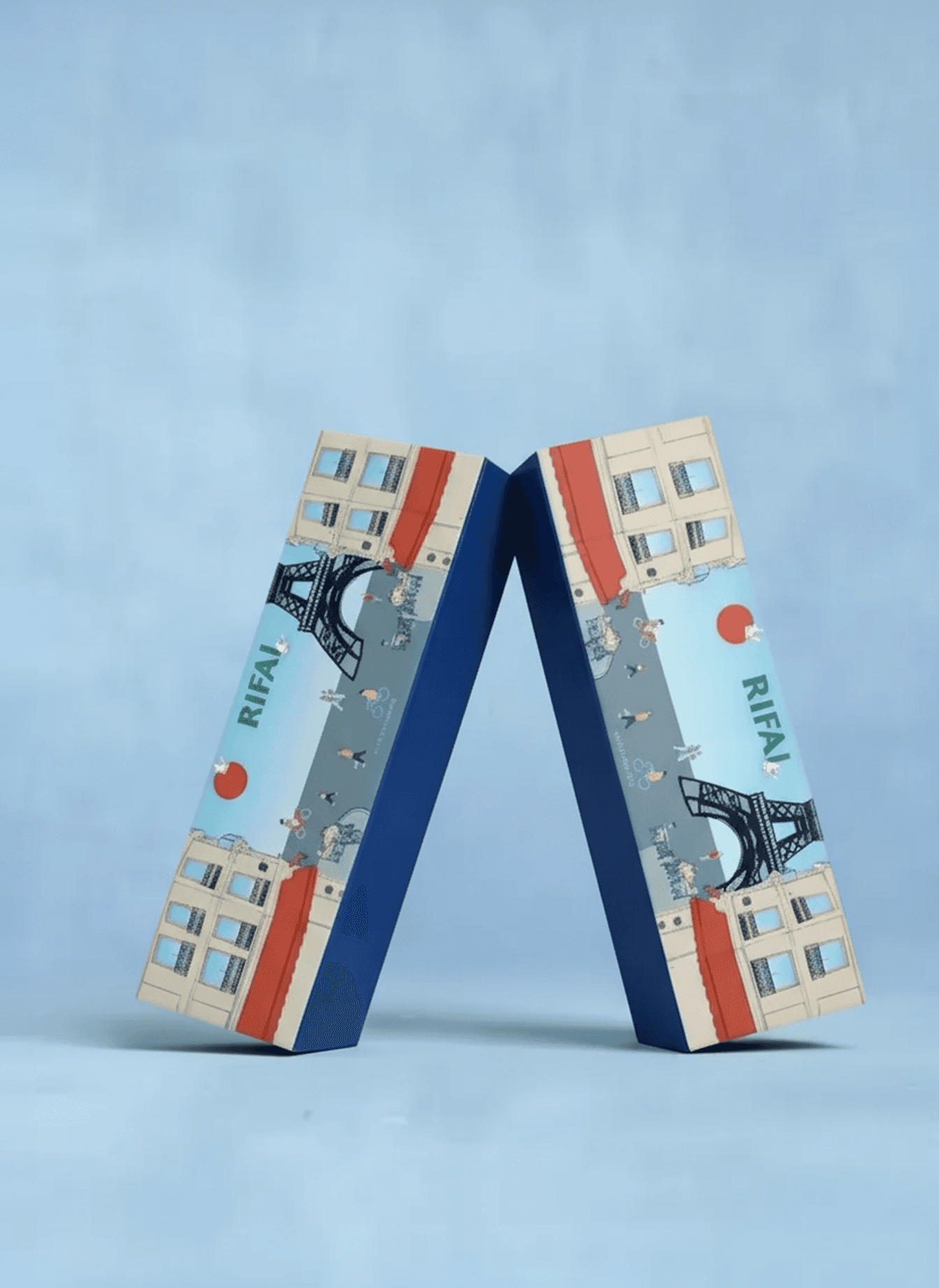 For this project, we were commissioned to design three custom boxes for Rifai, created specifically for their stores in London, Paris, and Beirut. Each box was developed as a site-specific design, celebrating the individuality of each city while forming a cohesive collection when presented together.